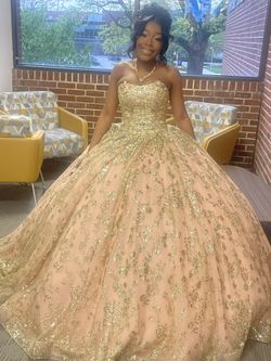 Dress rachel Allan quinceanera Rq2176 size 2 ball gown made of glitter tulle with strapless curved neckline lace up back and detachable illusion sleev$800Baldwin, NY