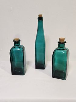Emerald Green Squared Hand Blown Vintage Glass Decor Bottles $15San Diego, CA