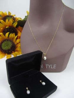 NEW! Beautiful 14K Solid Yellow Gold and Real Pearl Necklace & Earrings Set.$230Katy, TX