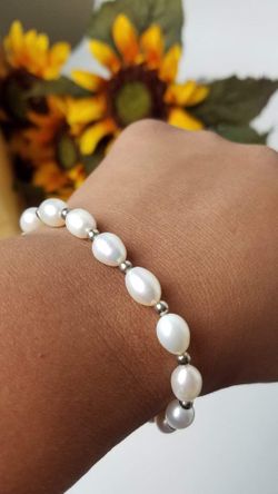 NEW! Beautiful Cultured Freshwater Pearl & Silver-Toned Beaded Bracelet. (20 Available!)$15Katy, TX