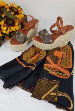 NEW! Gorgeous Women's Monogrammed Scarf and Wedges / Sandals / Pumps / Platforms Set. *(RPLCA)* $280Katy, TX