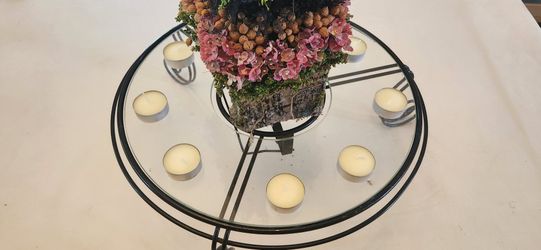 Estate Sale Vintage MCM Decorative Wrought Metal Scroll Stand Vase Glass Top Tea Light Candle Holder Decor$25Elmhurst, IL