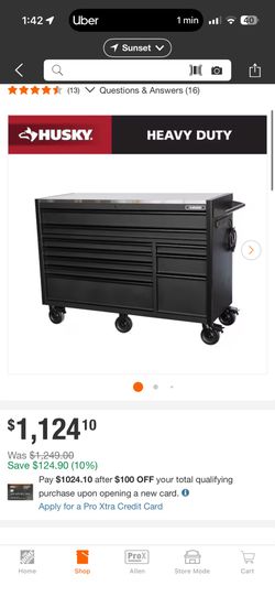 Husky : Modular Tool Storage 62 in. W X 24 in. D Heavy Duty Matte Black Mobile Workbench Cabinet with Stainless Steel Top$900Los Angeles, CA