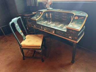 Chinese Lacquer Harpsichord-Style Writing Desk and Chair — Hand-Painted Chinoiserie with Mother-of-Pearl Inlay$2,500Los Angeles, CA