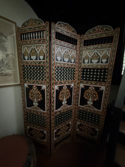 Hand-Painted Moroccan Moorish Folding Screen — Three-Panel Room Divider with Intricate Geometric and Floral Motifs $370Los Angeles, CA