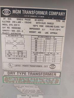 50 Kva 480 Volt To 240 Volt Transformer $1,100Tempe, AZ
