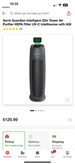 Germ Guardian Intelligent 22in Tower Air Purifier HEPA Filter UV-C Intellisense$60Huntington Park, CA