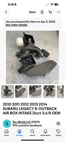 2010 2011 2012 2013 2014 SUBARU LEGACY & OUTBACK AIR BOX INTAKE Duct 3.6 R OEM$150El Cajon, CA
