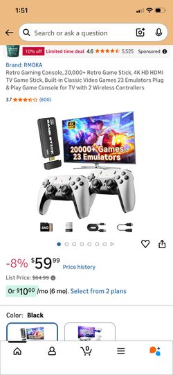 Retro Gaming Console, 20,000+ Retro Game Stick, 4K HD HDMI TV Game Stick, Built-in Classic Video Games 23 Emulators Plug & Play Game Console for TV wi$35Apache Junction, AZ