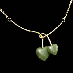 RARE Vintage Designer SARAH COVENTRY "Duo Hearts" Faux Jade Gold Tone Necklace$20Miramar, FL