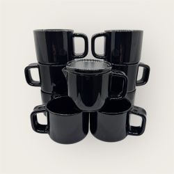8 Sasaki Stoneware Vignelli Designs Japan 1986 Black Coffee Mugs 3” & 1 Creamer$110Boynton Beach, FL