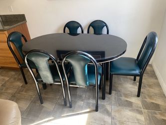 Black Formica Dining Table With 6 Metal Chairs. Pick Upon Pasadena. $150Pasadena, CA