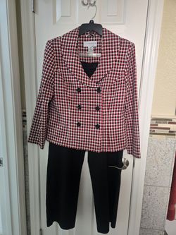 Sag Harbor Woman's Red Black White Houndstooth pattern Blazer and Pants set Size 14$45Henderson, NV