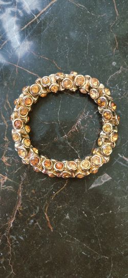 Vintage Gold Tone Dark & Light Amber Color Rhinestone Studded Stretch Bracelet$10Henderson, NV