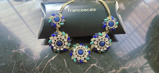 New Stunning Francesca’s Gold Tone Multicolored Acrylic With White Rhinestone Studded Floral Necklace With Earrings$30Henderson, NV