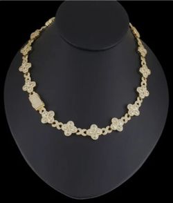 14K Gold Plated Cz Clover Flower Choker Chain Necklace And Bracelet Set$450Fort Lauderdale, FL
