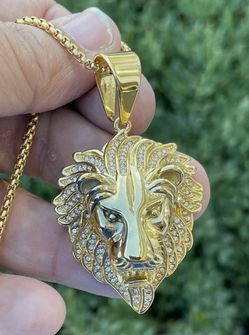Lion Head Pendant Necklace – Men & Women 14k Gold Finish, Black Iced Medallion, 925 Italy Stainless Steel, 2.5mm Rope Chain, King of the Jungle Jewelr$49Fort Lauderdale, FL
