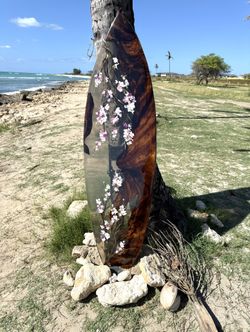 Surfboard Art, Hawaiian Monkeypod And Epoxy Cherry Blossoms 70 Inches$3,300Mililani, HI