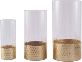 3 pcs Clear Gold Honeycomb Trim Glass Cylinder Vases Set - Wedding Party Home Events Centerpieces Decorations$20Montebello, CA