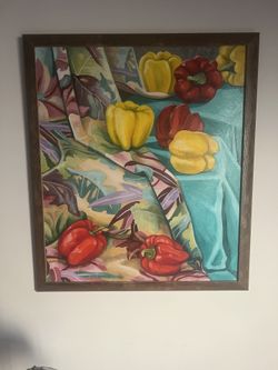 Large Peppers Still Life painting Framed Signed Casa Santo$30Miami, FL