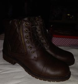This is a pair of Vepose women's brown faux leather combat ankle boots with a quilted side panel, lace-up front, and side zipper closur$40Columbus, OH