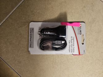 Allied Automotive Lightning Cable & Dual Port USB Car Charger 45584 Black NEW