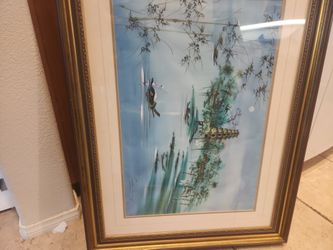 Asian Art Painting Caligraphy Boat Water Fullmoon Signed Artist$100Ladera Ranch, CA