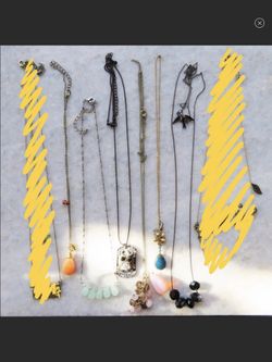 6 Women's Necklaces Gold Metal Chain Studs Rhinestones Flower Tear Drop Stones owl pendants$28Houston, TX
