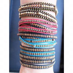 5 Wrapped Gold Metal Chain Metallic Beaded Colored Layer Women's Bracelets Black Red Blue$35Houston, TX
