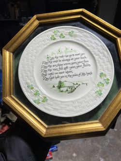Antique Porcelain 1903 Belleek Irish Blessings Plate in glass wall display case$120Montvale, NJ