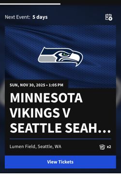 Seahawks v. Vikings 11/30 Two Tickets$500Auburn, WA
