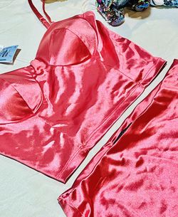 Satin two-piece miniskirt and bustiers shirt new$15Chicago, IL