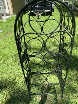 Vintage Bronze Tropical Metal Wine Rack With Elephants Palm Trees Kitchen Decor $30Louisburg, NC