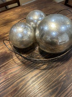 World Market Set Of 3 Silver Lighted Balls. Wire Basket Included. $45Fort Worth, TX