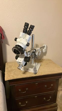 AmScope WF 10×120 stereo zoom microscope on a boom stand with 144 LED ring light$1,000Haltom City, TX
