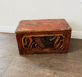 Vintage Decorative Hand Carved Wooden Chest With Red And Brown Finish $125Long Beach, CA