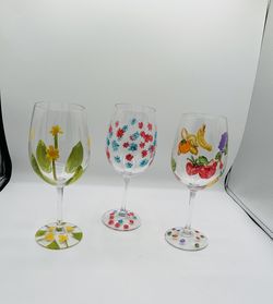 Vintage Hand Painted Floral Wine Glasses ARC France Set Of 3$55Long Beach, CA