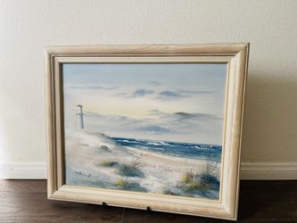 Vintage Original Oil Painting of A Beach and Lighthouse Scene Signed 19/24 In$145Long Beach, CA