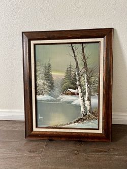 Vintage Original Painting of Winter Scene Whit A Cabin Framed 16/20 Inch Signed $105Long Beach, CA