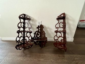 Vintage Dark Wood Tiered Corner Wall Shelfs Display Set Of 3$165Long Beach, CA