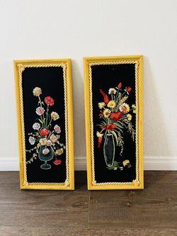 A Pair Of Vintage Embroidery Art Pieces Flowers In Vases With Wood Frame 9/21”$110Long Beach, CA