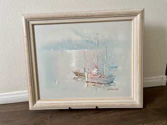 Vintage Oil Painting Seascape Scene Sailboat and Seagull Signed Framed 20/24”$110Long Beach, CA