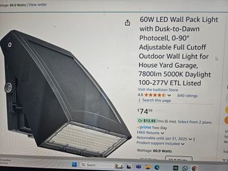 60W LED Wall Pack Light with Dusk-to-Dawn Photocell, 0-90° Adjustable Full Cutoff Outdoor Wall Light$59Phoenix, AZ