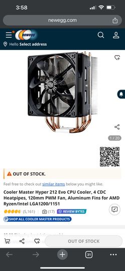 Cooler Master Cpu Cooler Hyper 212 Evo$10Renton, WA