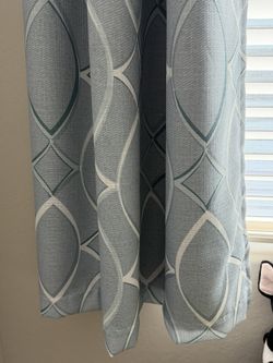 Six blue/white modern blackout curtain panels and three rods$20Chandler, AZ