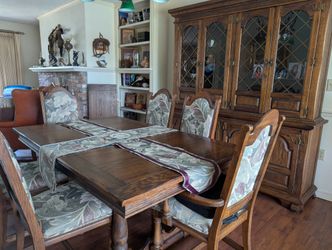 Vintage Burlington Solid Oak Dining table Lighted China Hutch 6 Chairs 2 Leafs Made In USA $500Eustis, FL