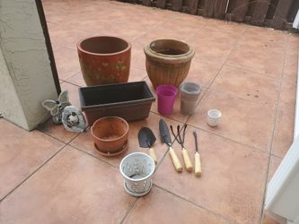 Assorted pots, Garden handheld tools, Decorations$10Miramar, FL
