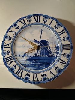 Vintage Original Delft Holland 9 7/8" Plate Wall Clock Scalloped Border Working$150Temecula, CA