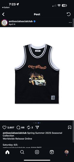 Anti social social club Tank top jersey Size L$60Windsor Hills, CA
