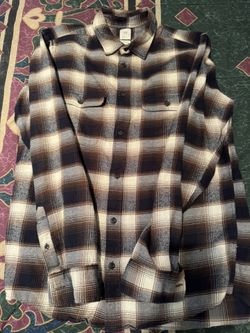 Orange and white plaid button-up flannel shirt #flannel$15Oakland, CA